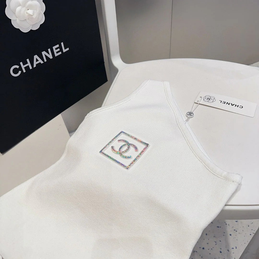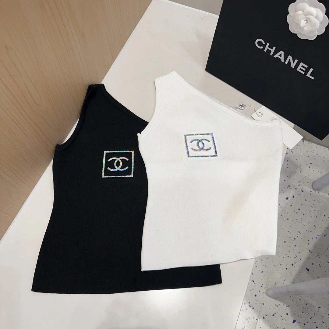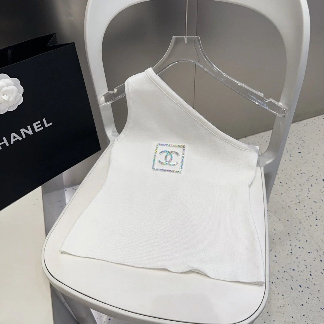 ONE SHOULDER TOP 624508 IN WHITE COTTON MULTICOLOR LOGO