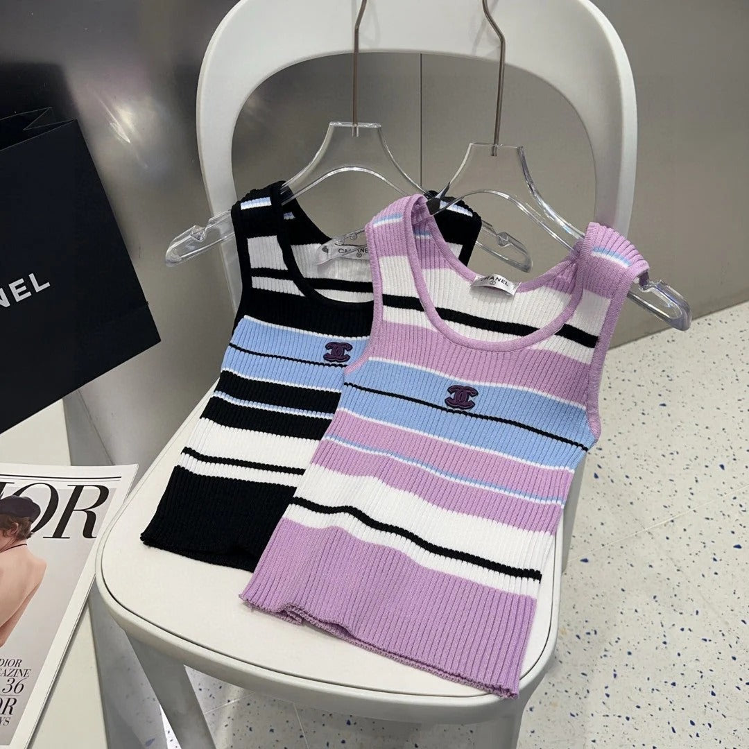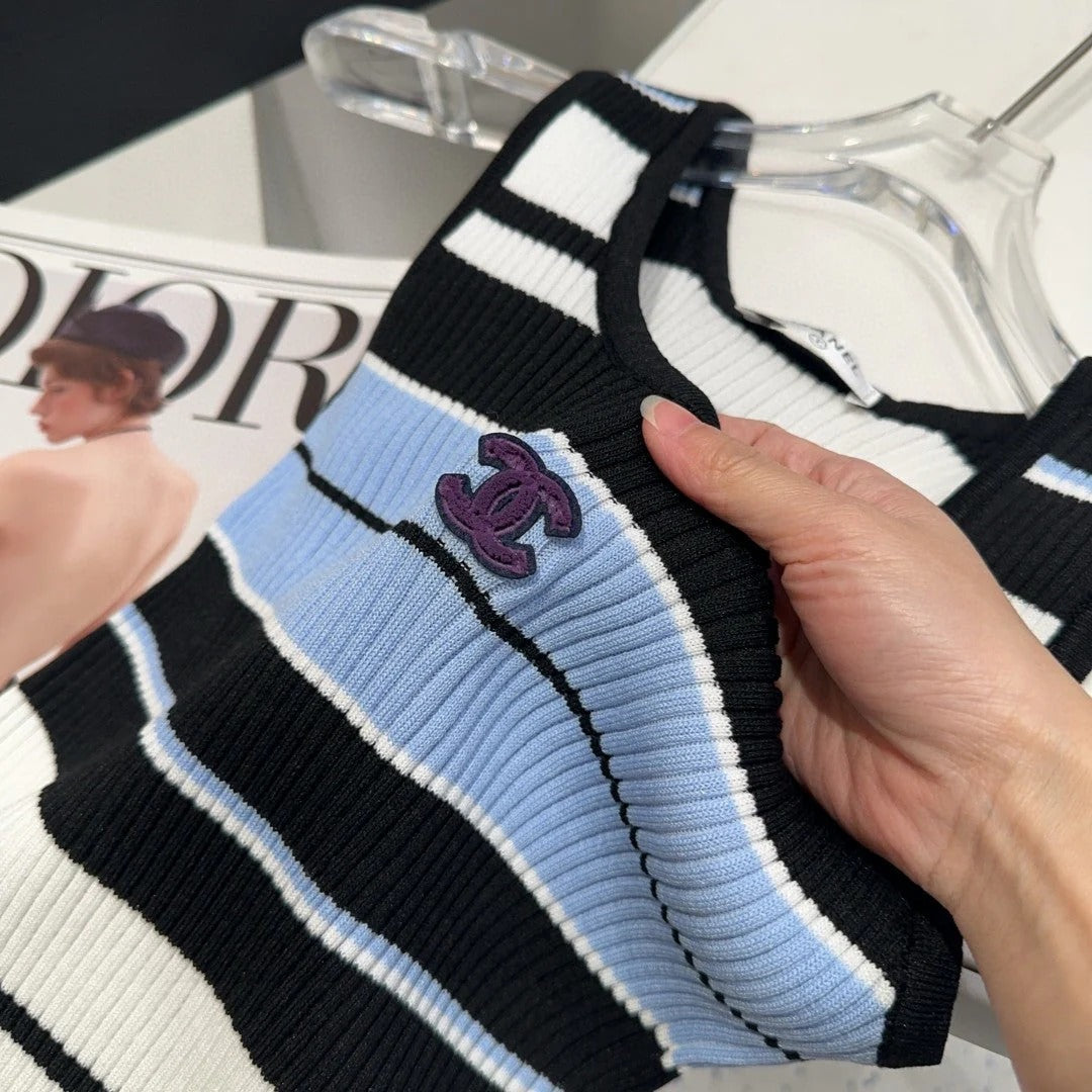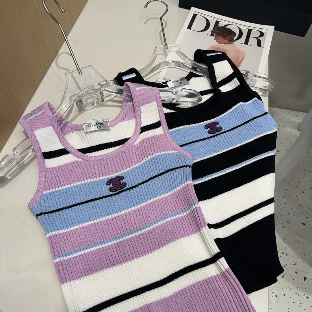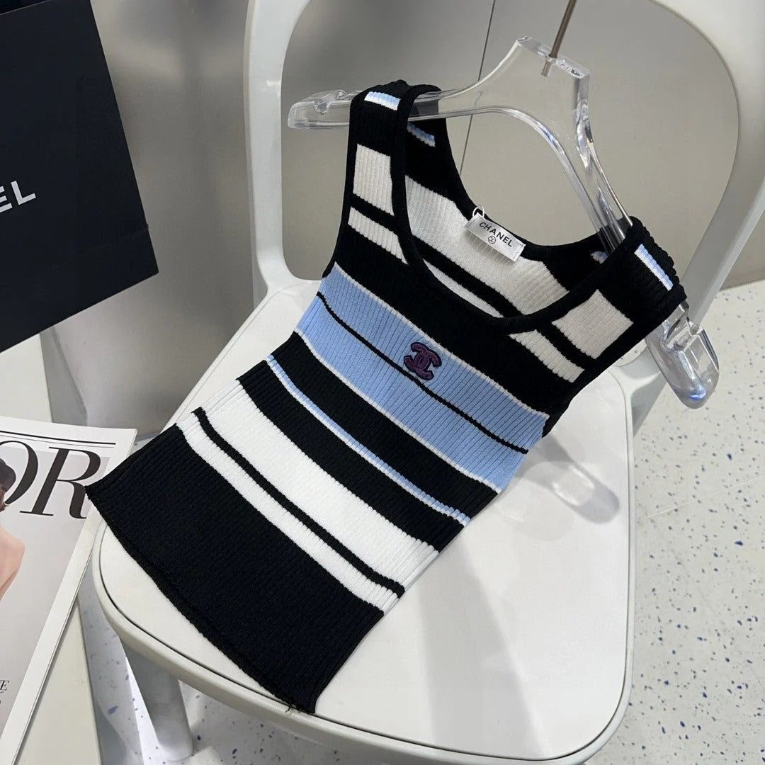 STRIPED TANK TOP 612057 IN BLUE BLACK COTTON RIBBED