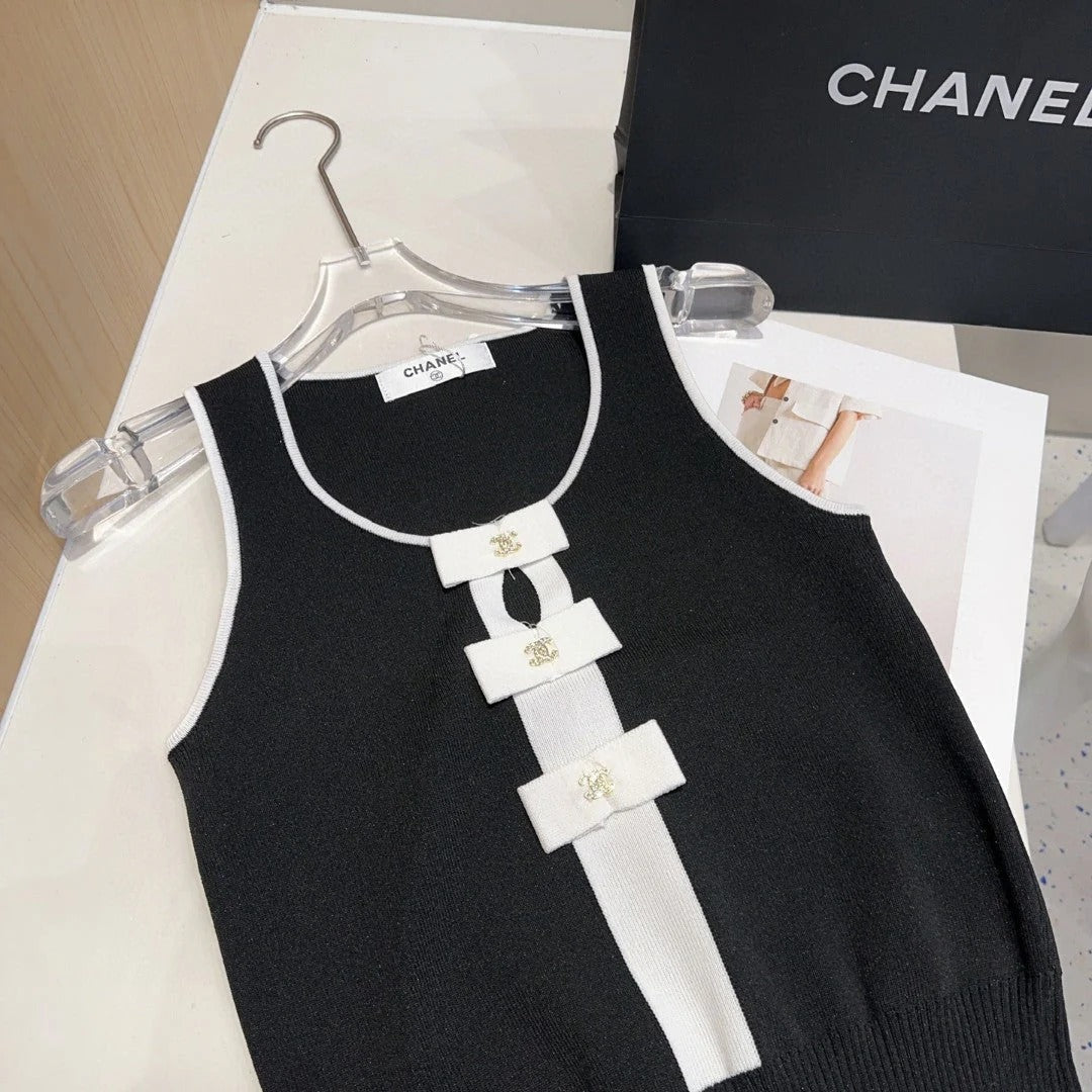 TANK TOP 610340 IN BLACK COTTON RIBBED WHITE BOW