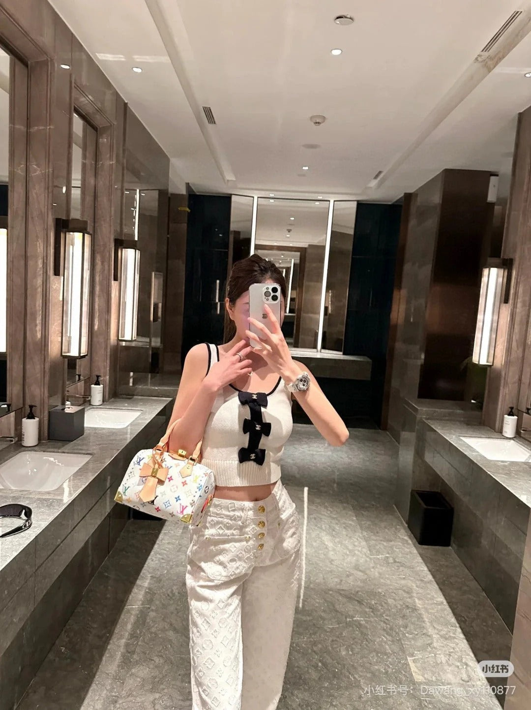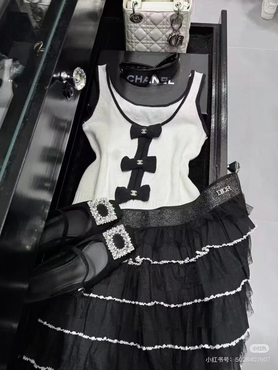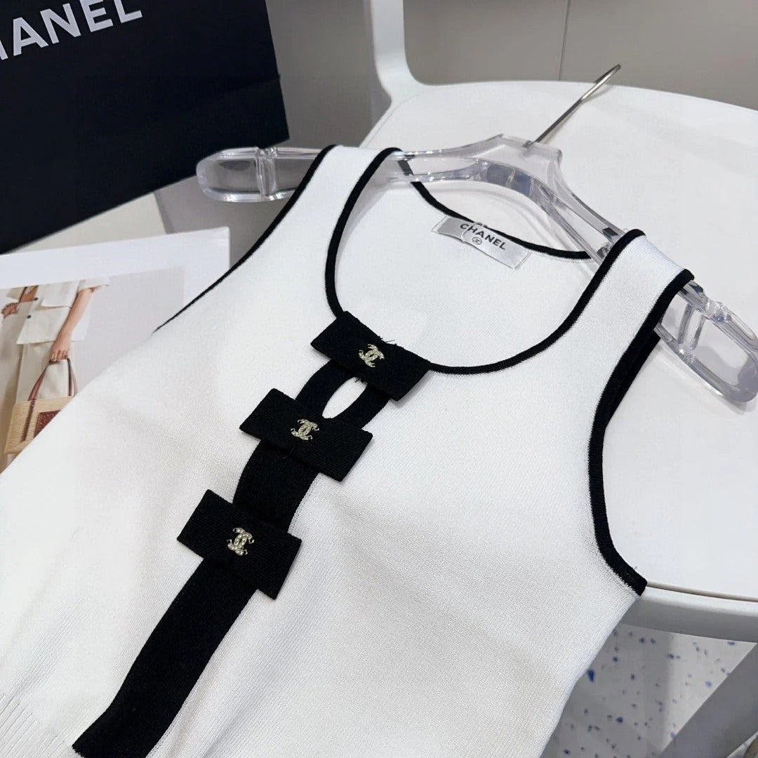 TANK TOP 610341 IN WHITE COTTON RIBBED BLACK BOW