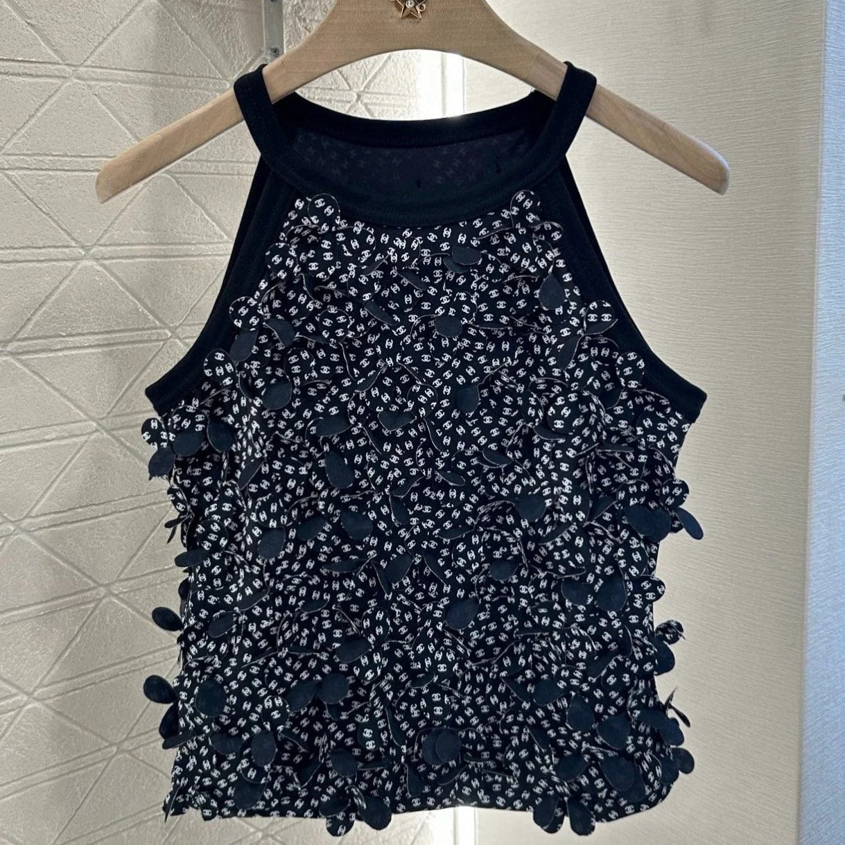 CHANEL BLACK PEARL-EMBELLISHED CAMISOLE