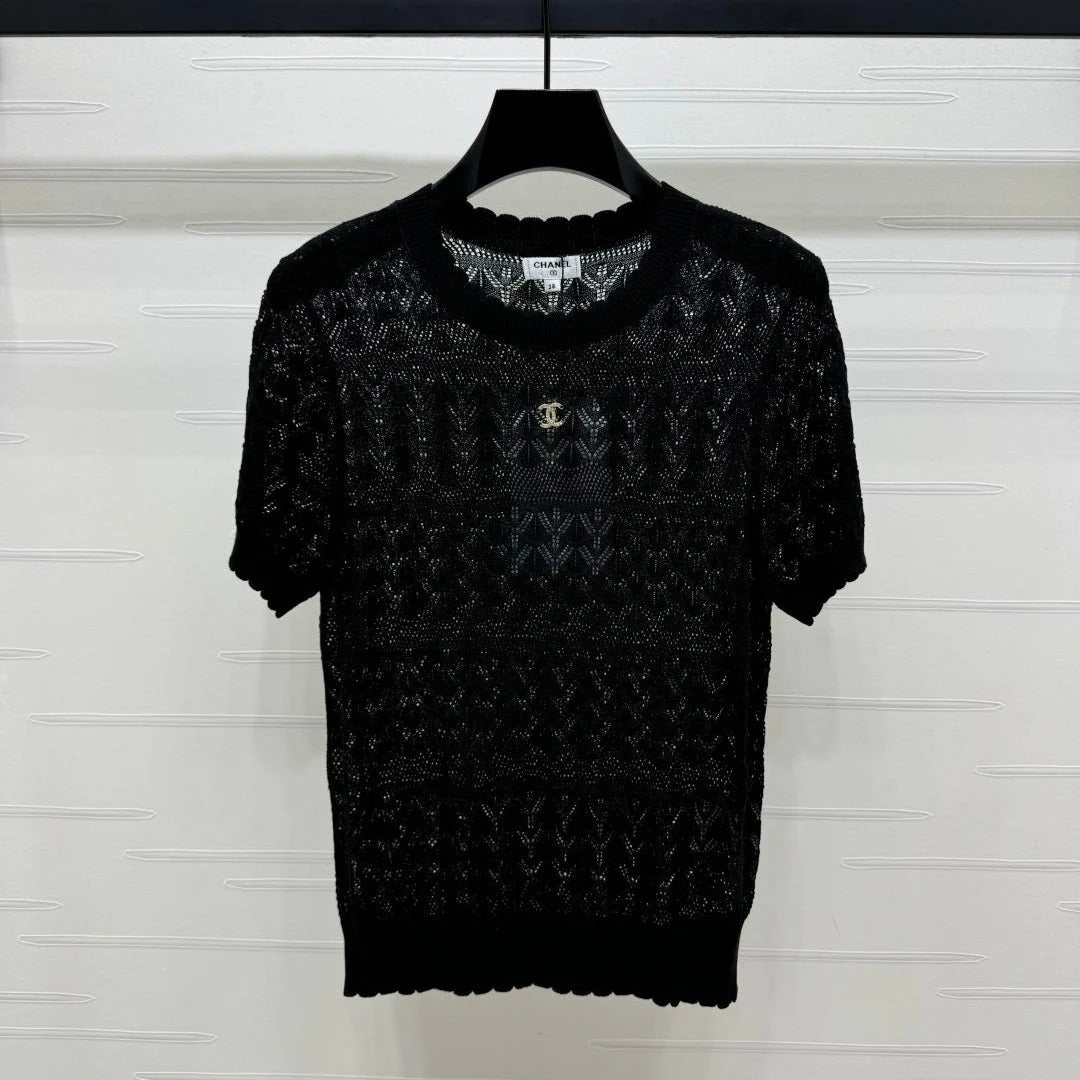 CHANEL 25S HOLLOW KNIT SHORT SLEEVE TOP 264150