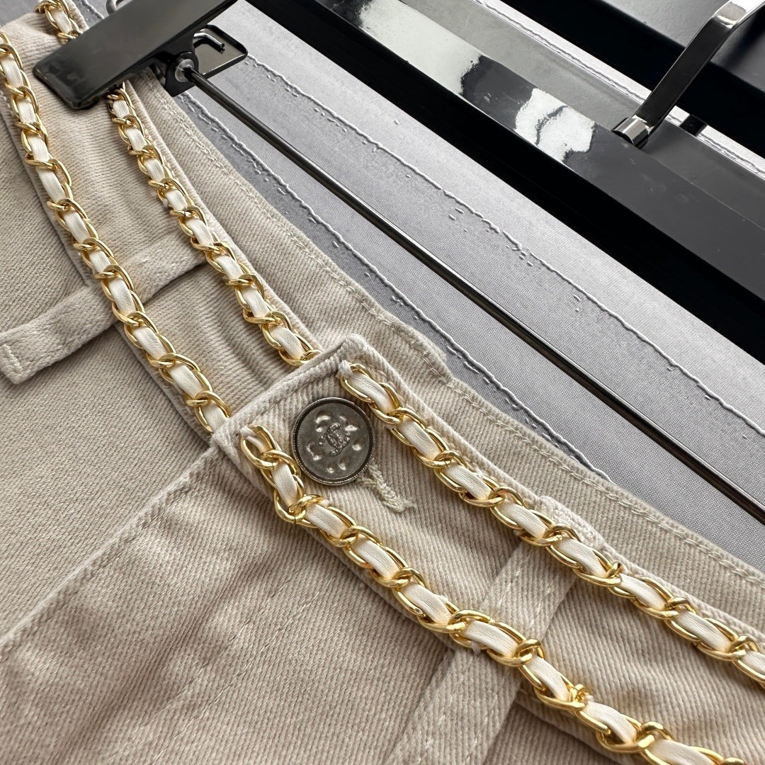 CHANEL FLARED JEANS WITH LOGO PRINT 263984