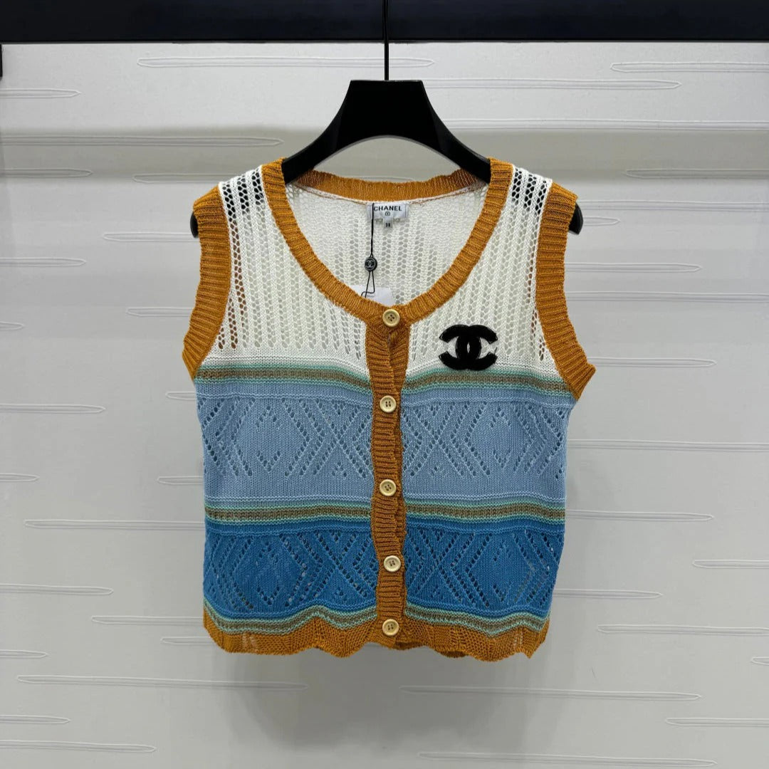 CHANEL SLEEVELESS OPEN-KNIT VEST 274858
