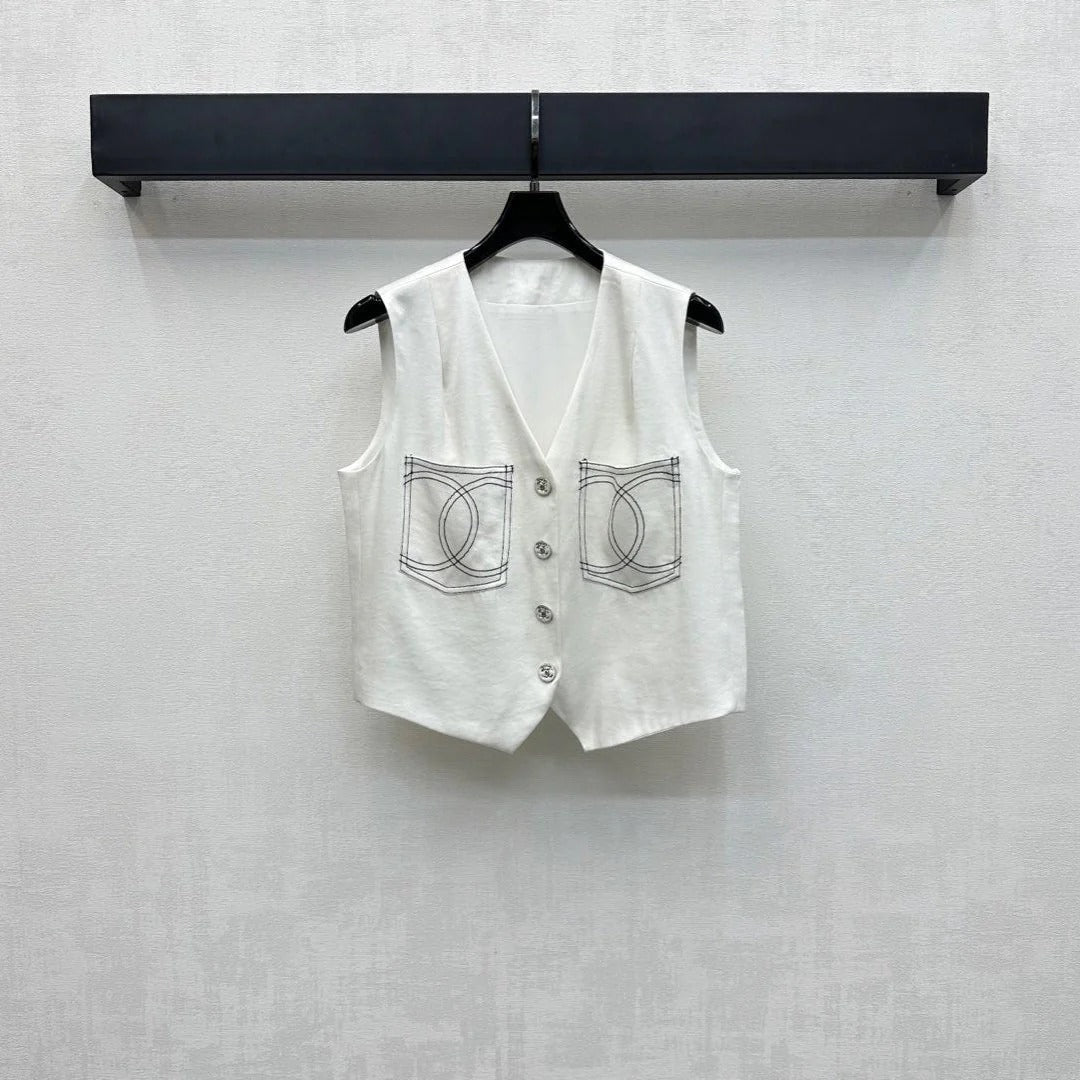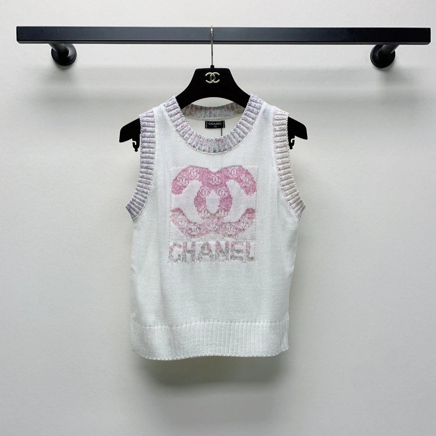 CHANEL EMBROIDERED LOGO OPEN-KNIT VEST 274869