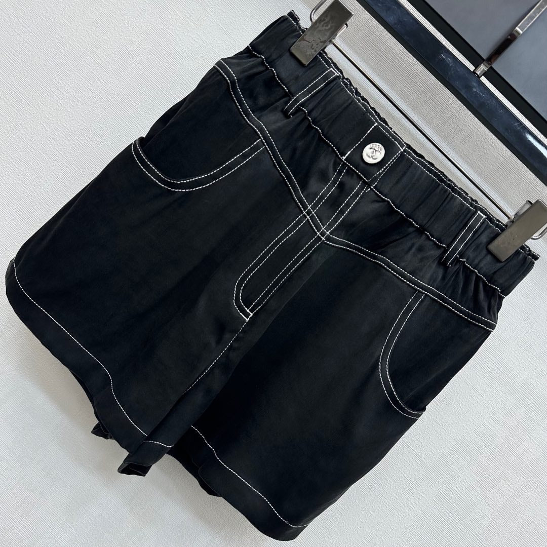 CHANEL LACE-TRIMMED DENIM SHORTS 275066