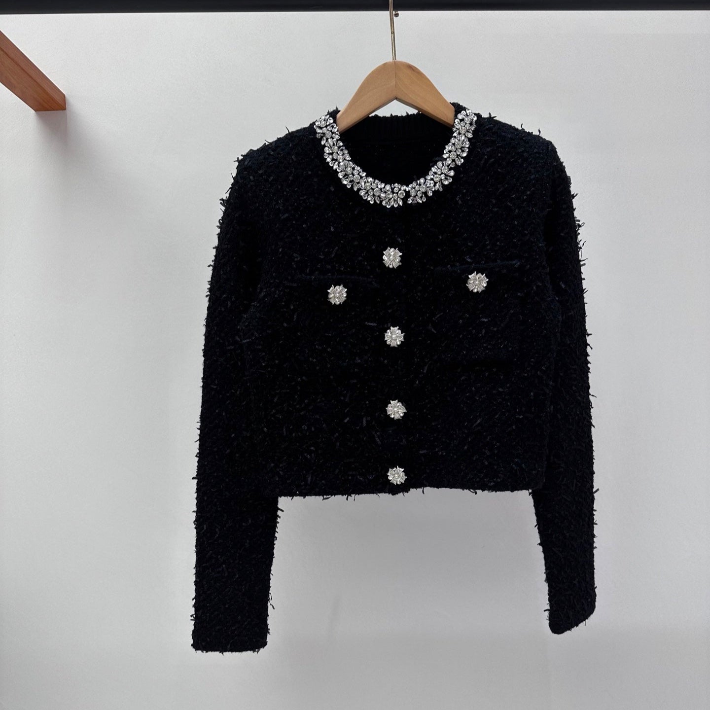 CC Tweed Fur Coat Black White Cotton Polyamide 251826