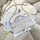 CC 25P Mini Flap Bag 22cm Top Handle Grey Calfskin Gold Hardware