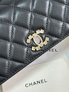 FLAP BAG 18 WITH HANDLE IN BLACK CALFSKIN GOLD HARDWARE