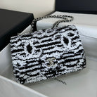 FLAP BAG 20 IN BLACK AND WHITE SAQUINS SILVER HARDWARE