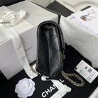 FLAP BAG 20 IN BLACK CALFSKIN SILVER CHAIN