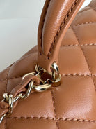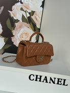 FLAP BAG 20 IN BRONZE BROWN LAMBSKIN WITH HANDLE