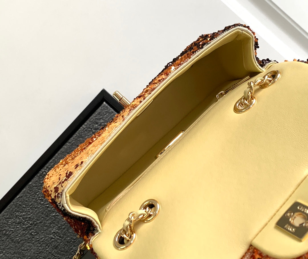 FLAP BAG 20 IN OMBRE ORANGE SAQUINS GOLD HARDWARE