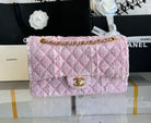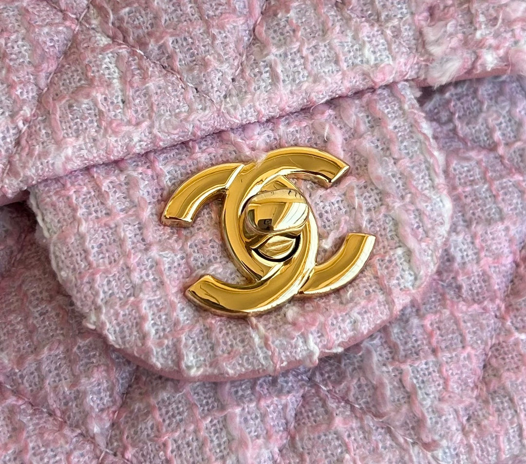 MEDIUM FLAP BAG 25 IN LIGHT PINK TWEED GOLD HARDWARE