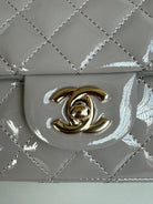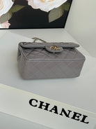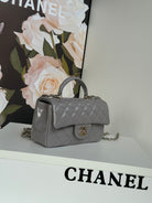 MINI FLAP BAG 20 IN LIGHT GRAY GLOSSY CALFSKIN GOLD HARDWARE