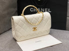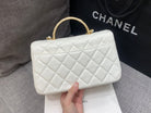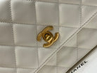 SMALL FLAP BAG 24CM TOP HANDLE WHITE LAMBSKIN GOLD HARDWARE