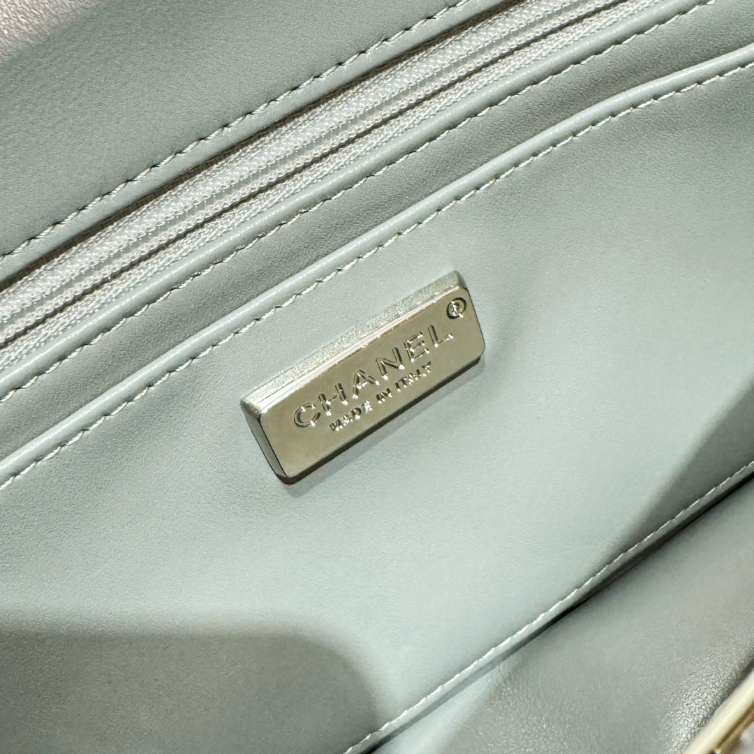 25C Flap Bag 21cm Dense Silver Sequin White Calfskin