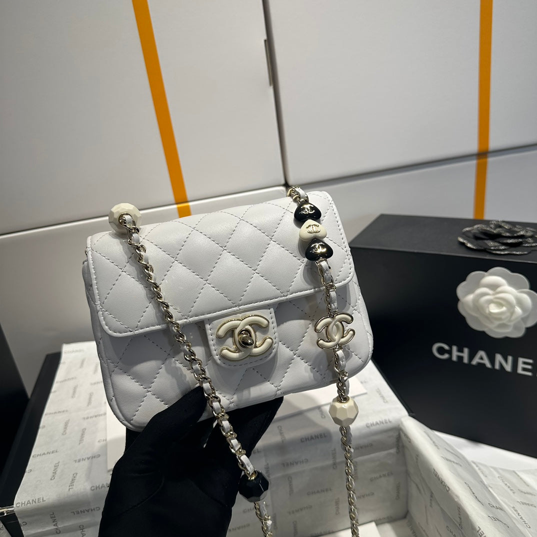 23P Flap Bag 15cm White Caviar Gold Hardware