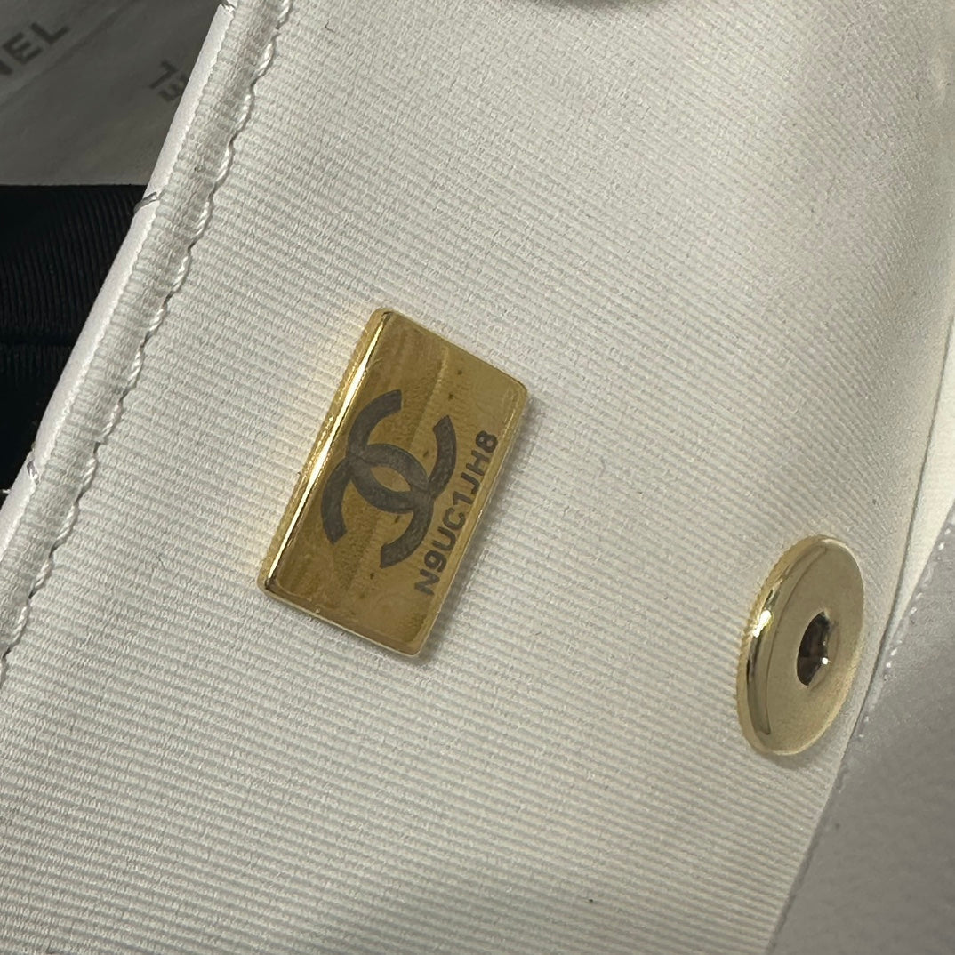 23P Flap Bag 19cm White Caviar Gold Hardware