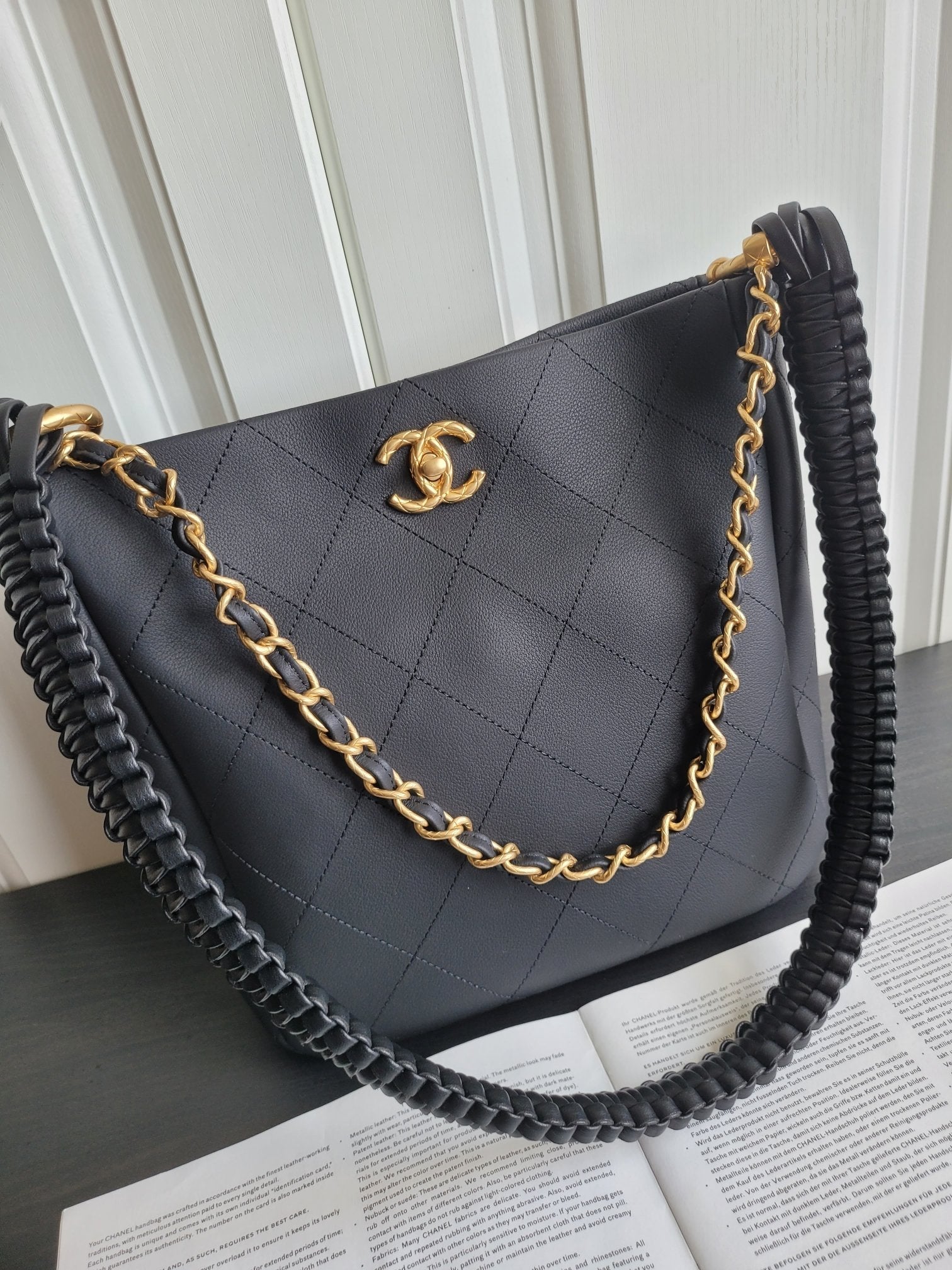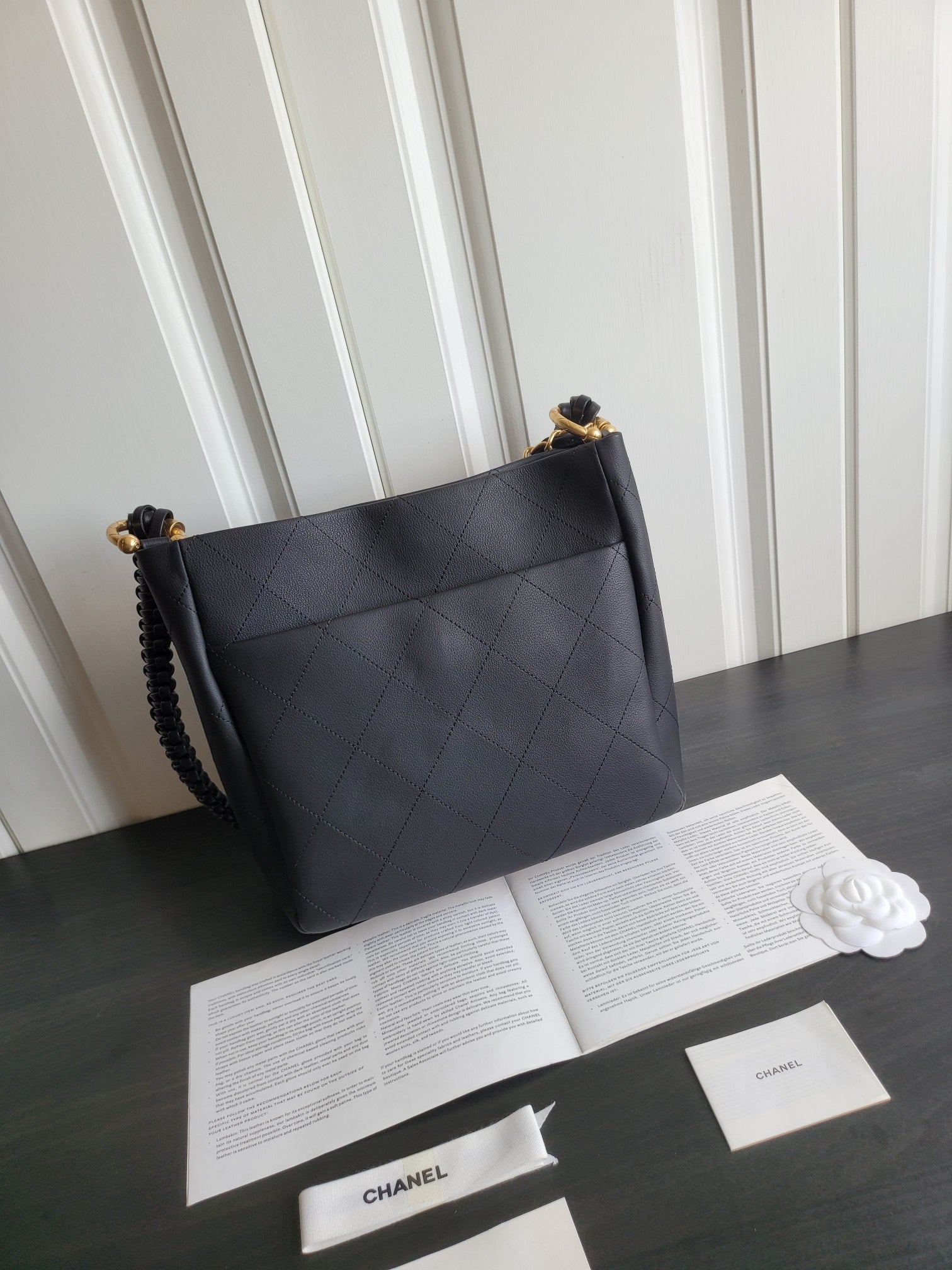 cc 23s hobo bag 26cm black calfskin gold hardware