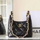 CHANEL 25S HOBO BAG 22 CM IN BLACK LAMBSKIN WITH GOLD HARDWARE