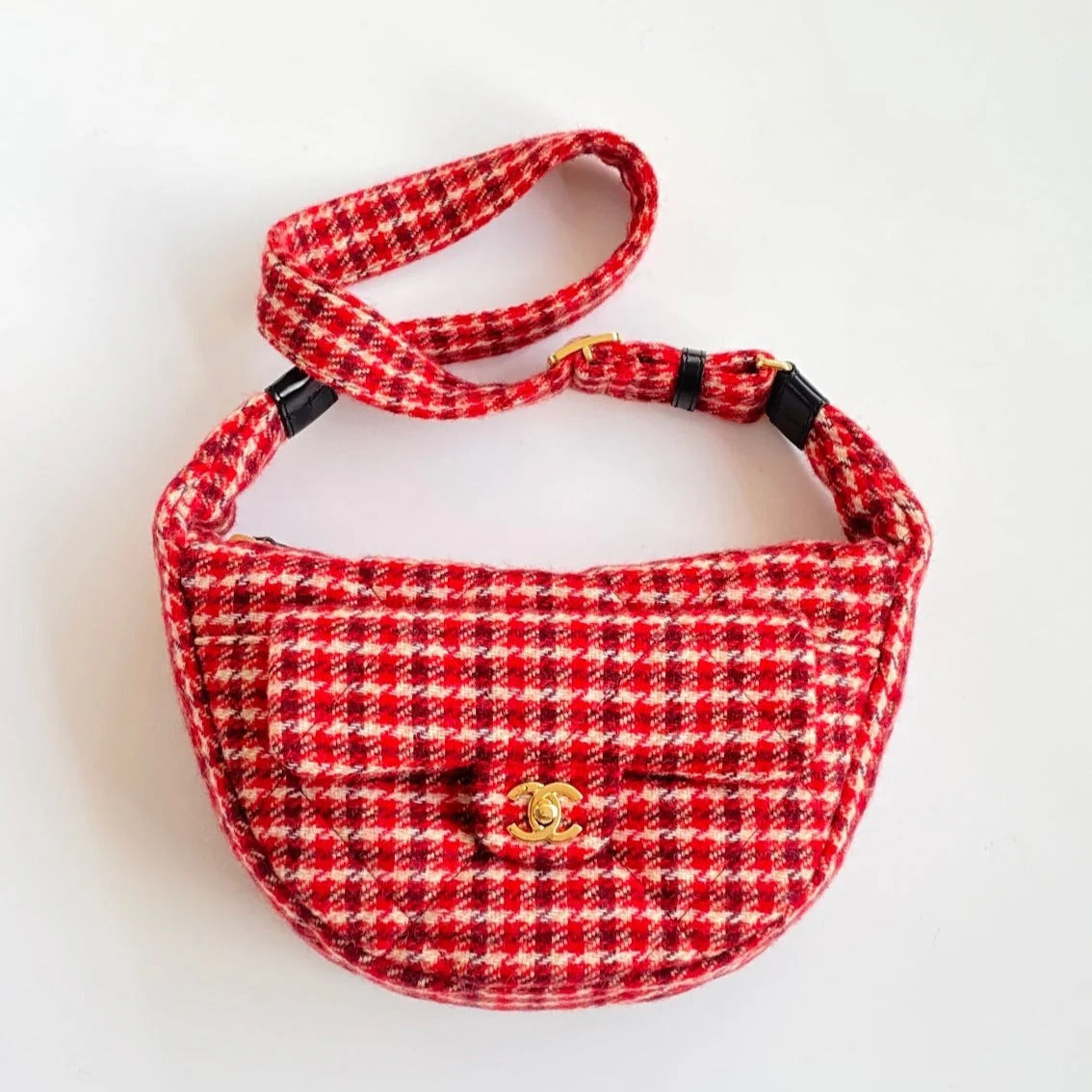 CHANEL 25S HOBO 30 CM IN RED TWEED WITH GOLD HARDWARE
