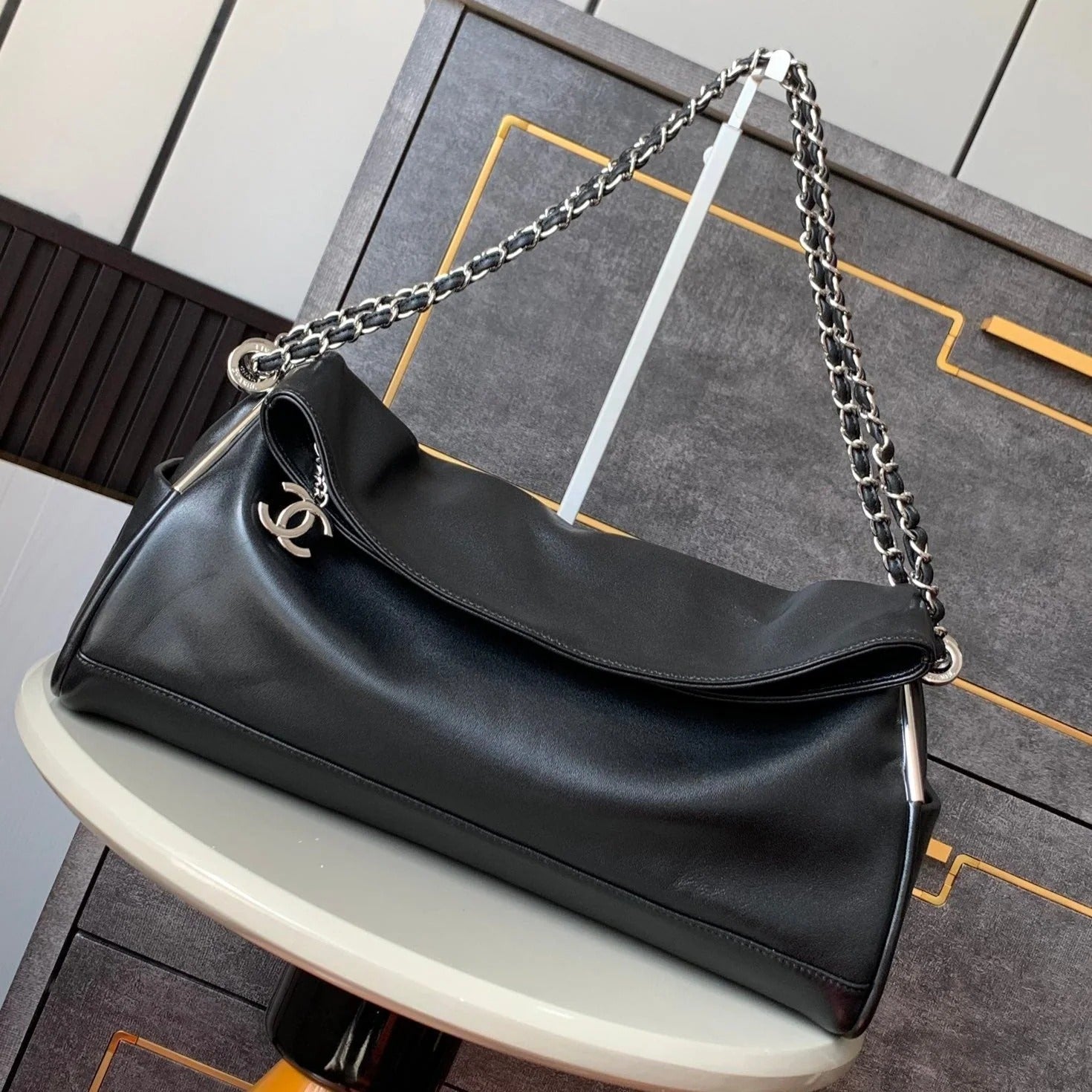 cc hobo bag 26cm black lambskin silver hardware