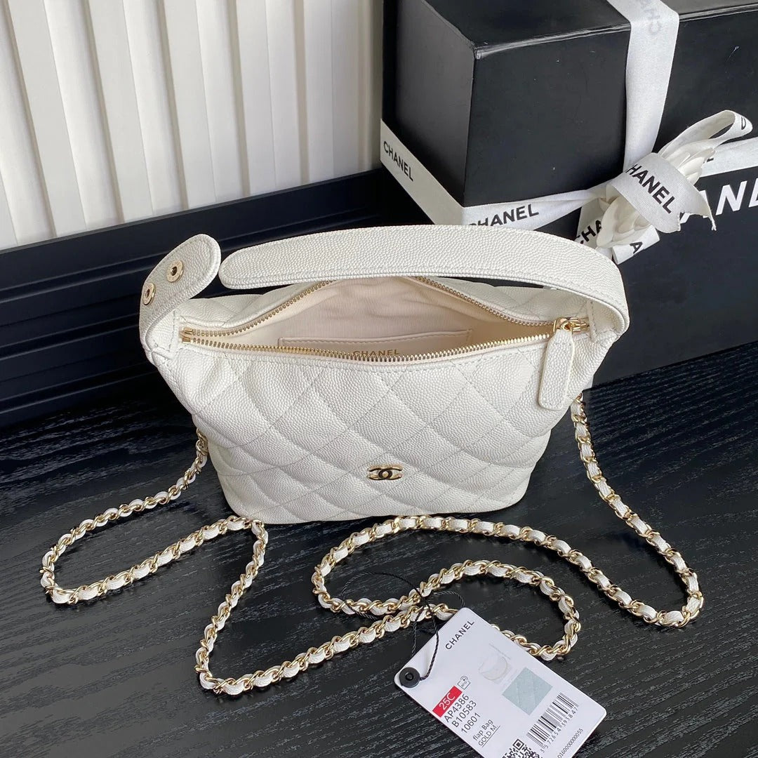 CHANEL 25S HOBO BAG 19.5 CM IN WHITE CALFSKIN WITH GOLD HARDWARE