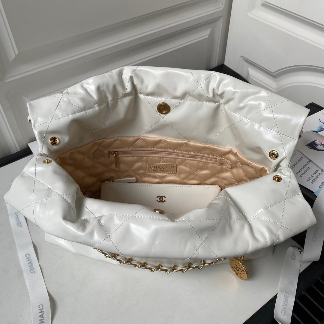CC 19 HOBO BAG 43CM WHITE CALFSKIN BLACK LOGO GOLD HARDWARE