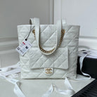 CC 19 TOTE 33CM WHITE LAMBSKIN GOLD HARDWARE