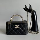 CC Vanity Case Pearl 17cm Black Lambskin Gold hardware