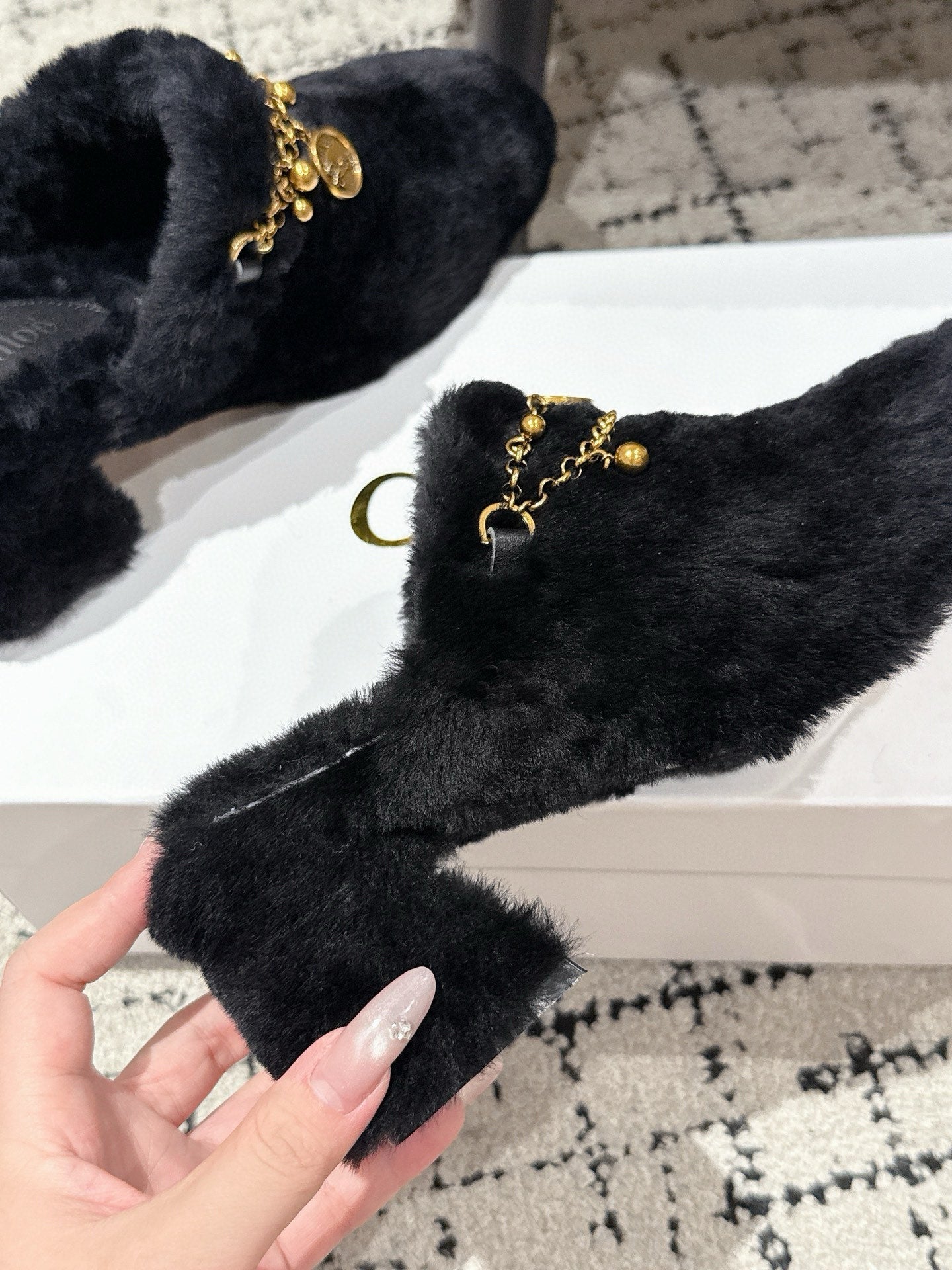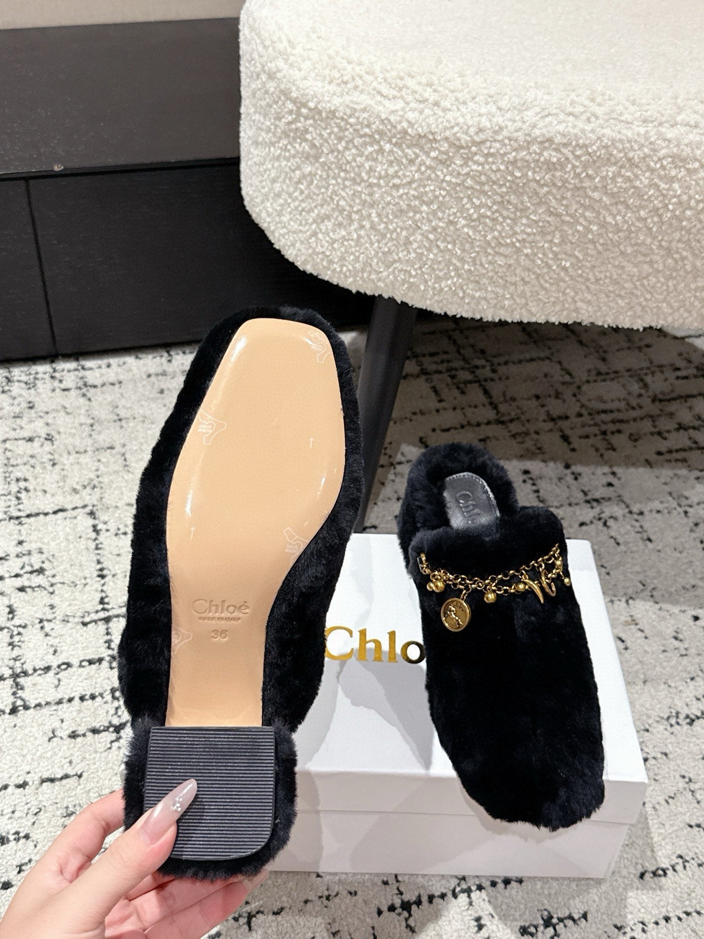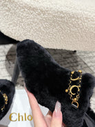 Chloe Covered Fur Slippers Black Wool 514327