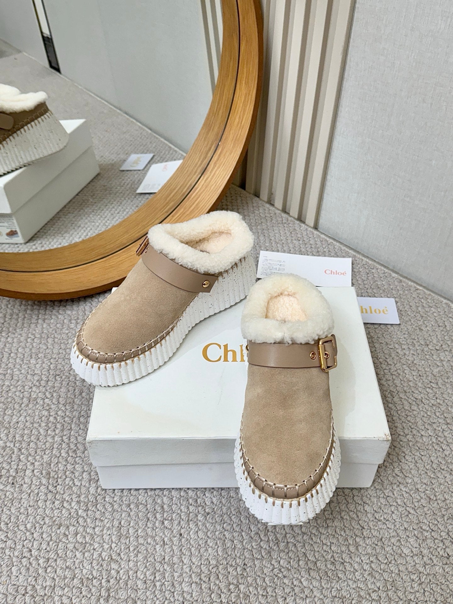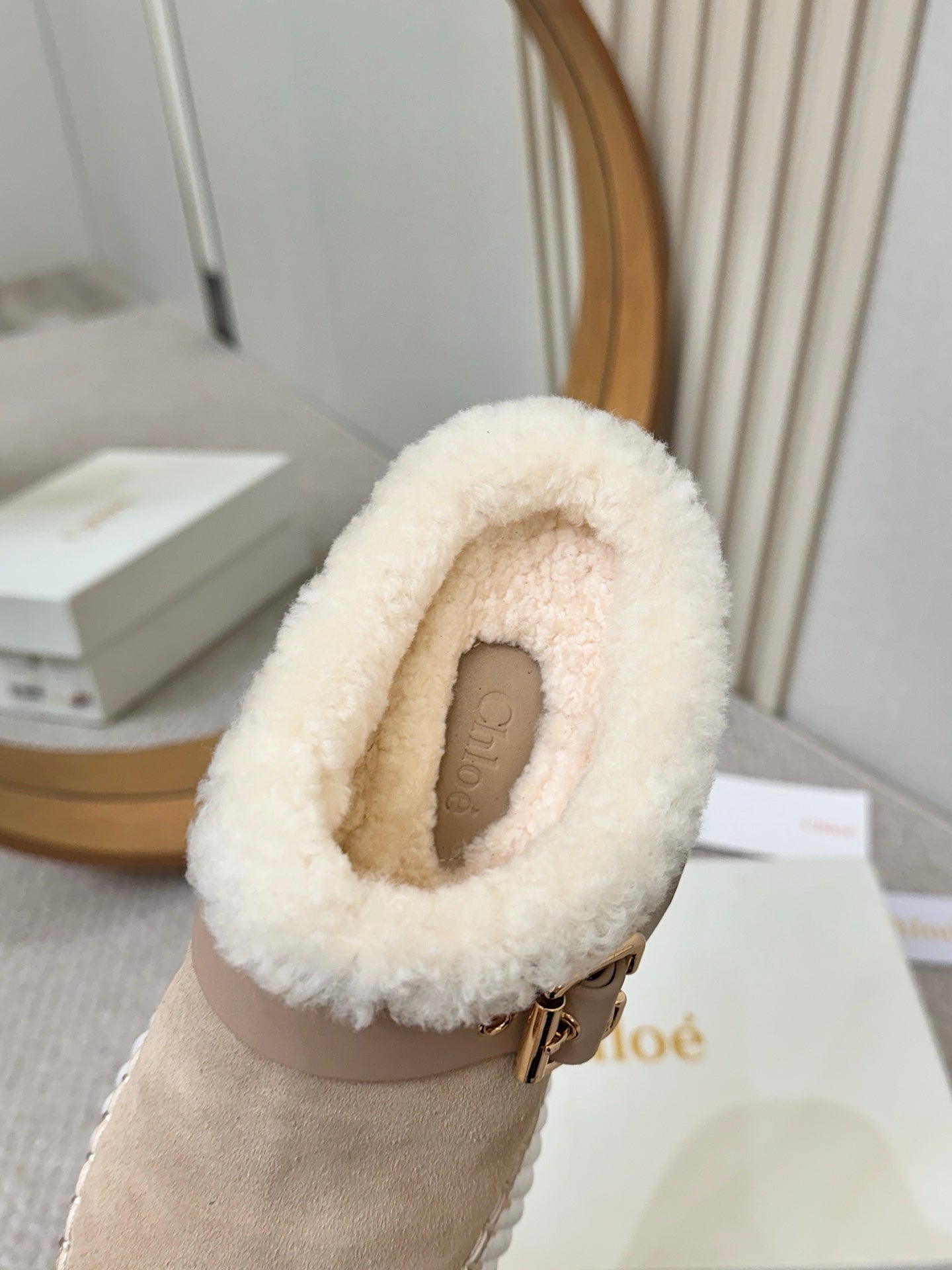 Chloe Nama Shearling-Lined Mule Beige Suede 528077