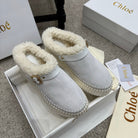 Chloe Nama Shearling-Lined Mule Light Gray Suede 523134