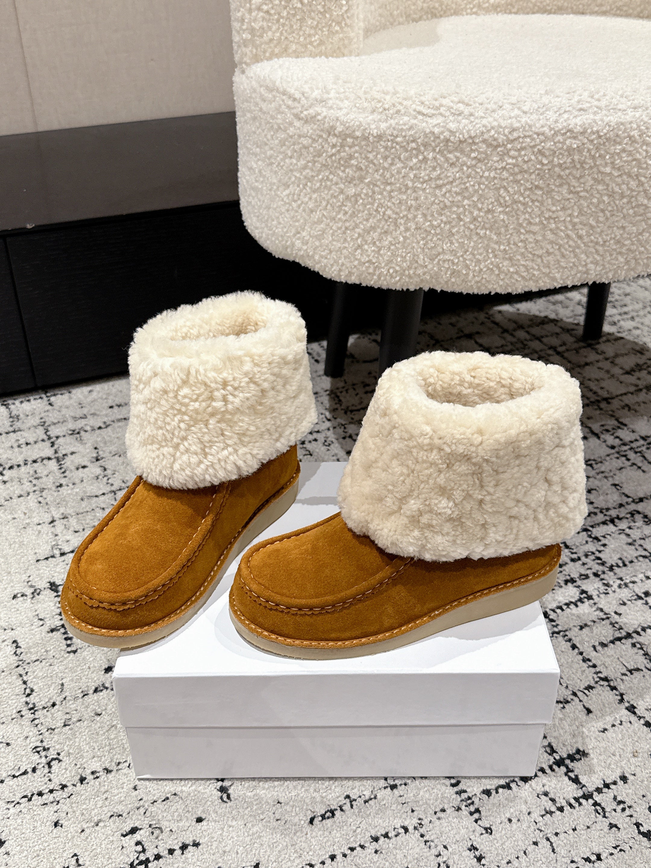 Chloe Snow Boots Tan Cream Suede Wool 514334