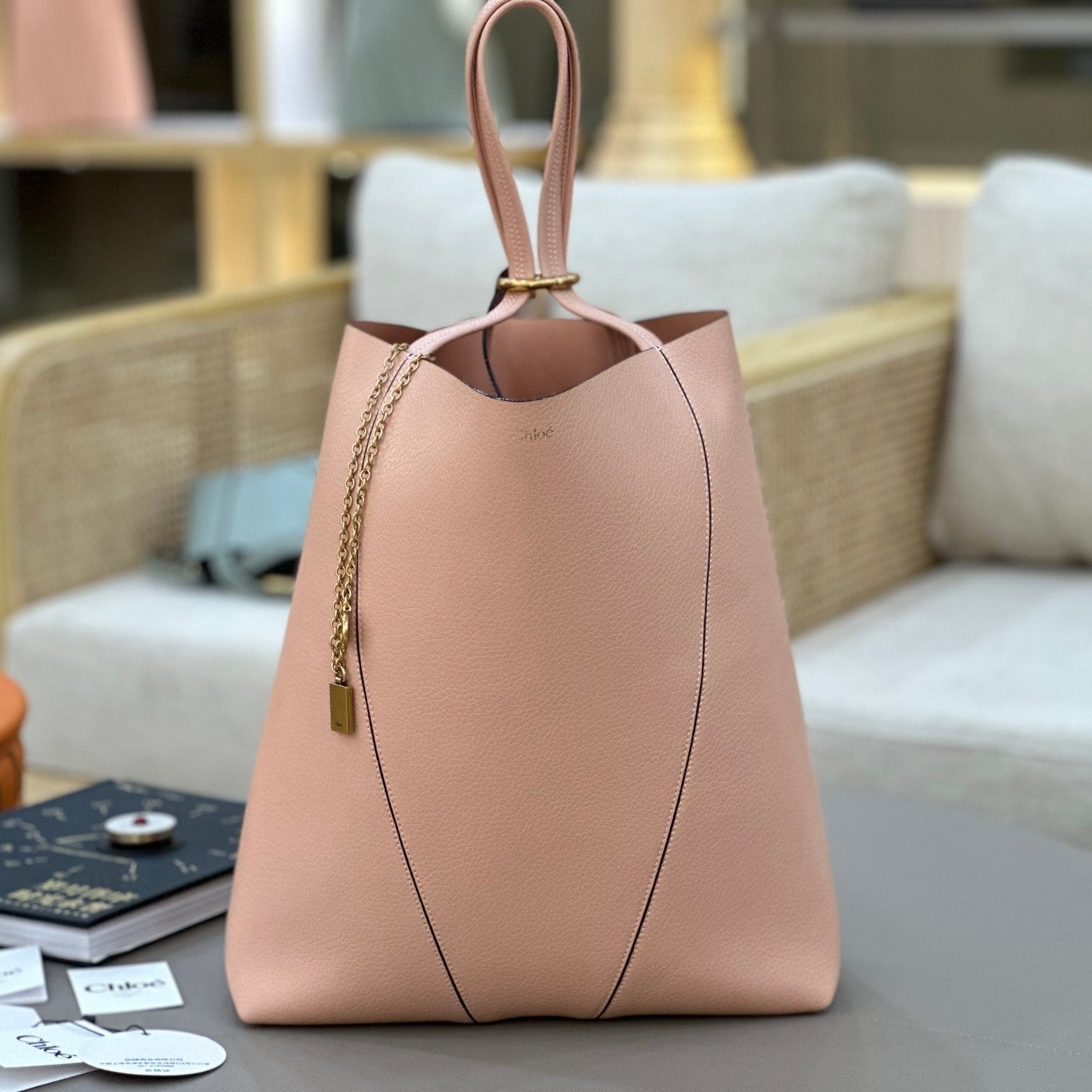 Chloe Spin Tote Bag Large 35cm Pink Calfskin 272293
