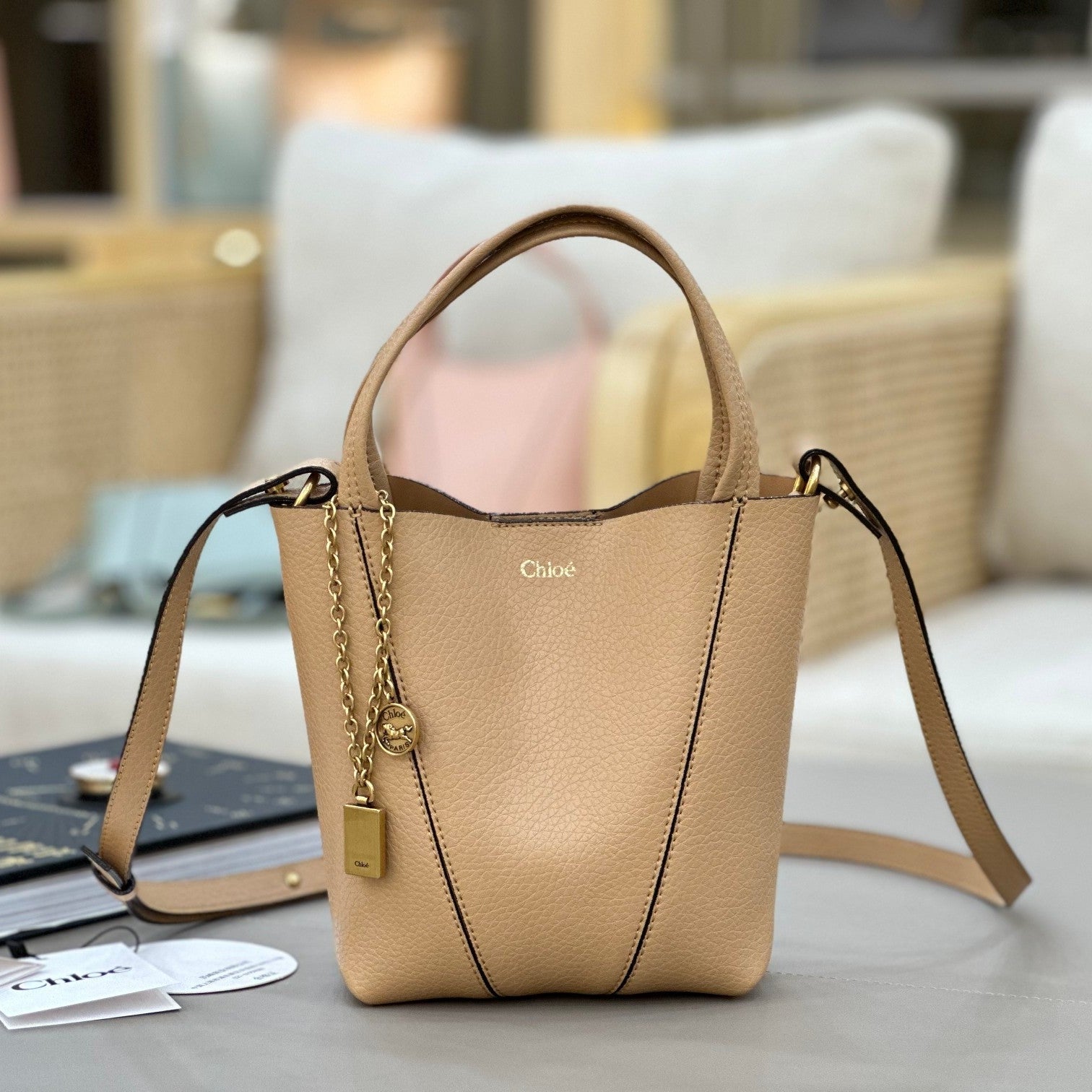 Chloe Spin Tote Bag Small 18cm Beige Calfskin 272304