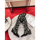 CL Morgan Fleur Knee High Boots Velvet with Crystals Black