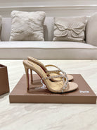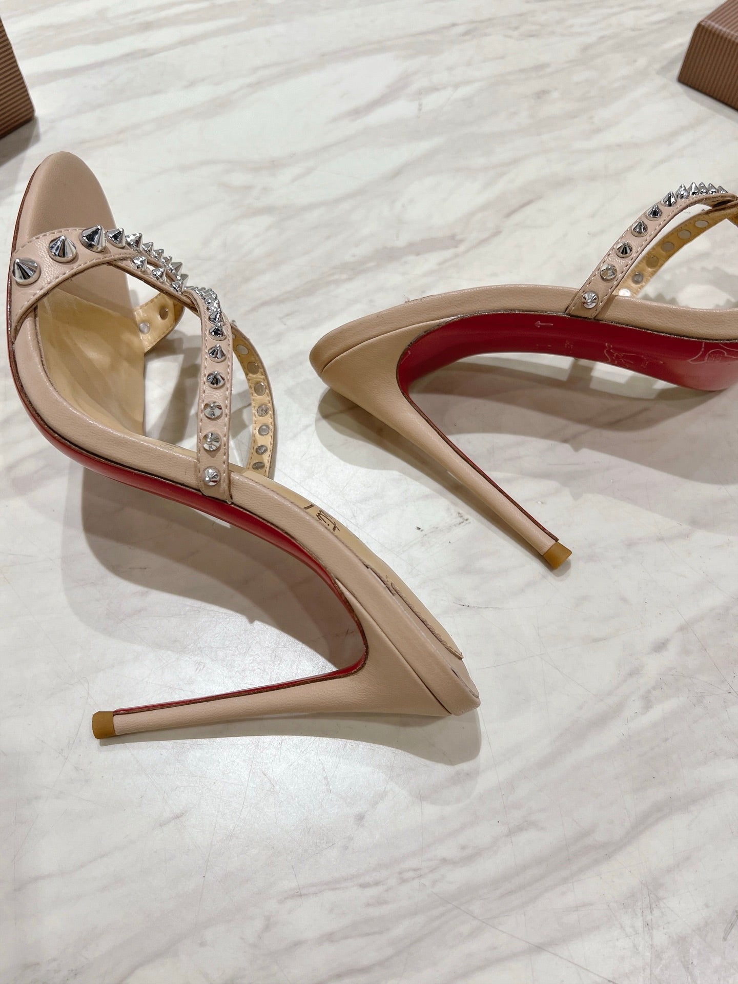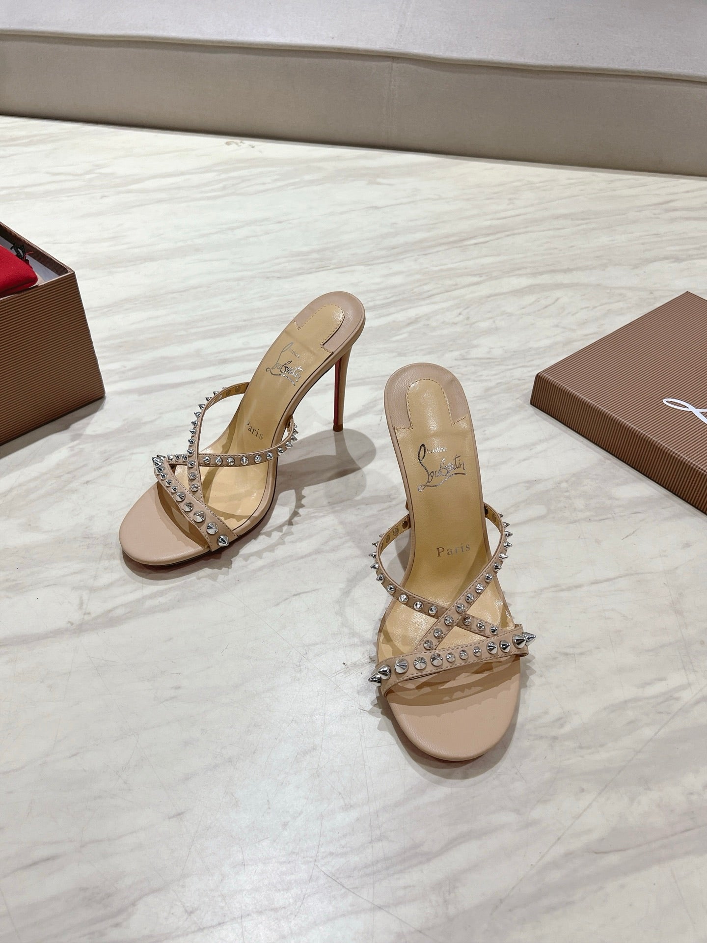 CL 25 Cross-Strap Slippers Nude Gloss Calf Patent Leather Rivets 314926