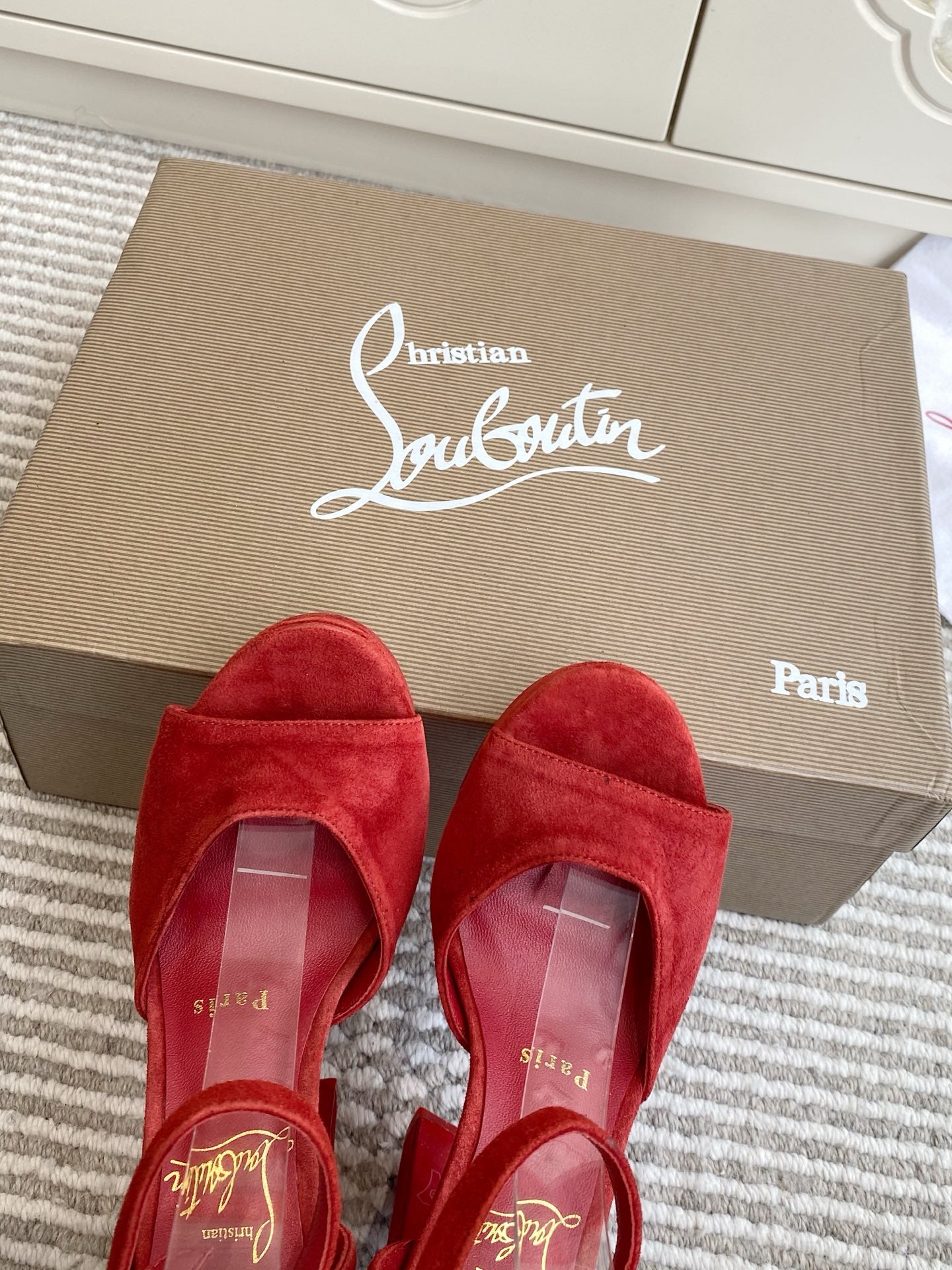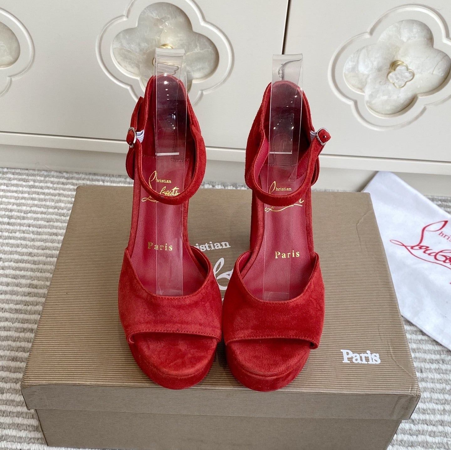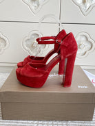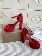 CL Sandaloo Ankle-Strap Platform Sandal Red Suede 542784