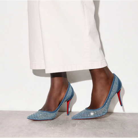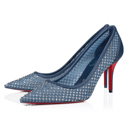 CL Apostropha Mesh Strass Pumps 80 mm Blue