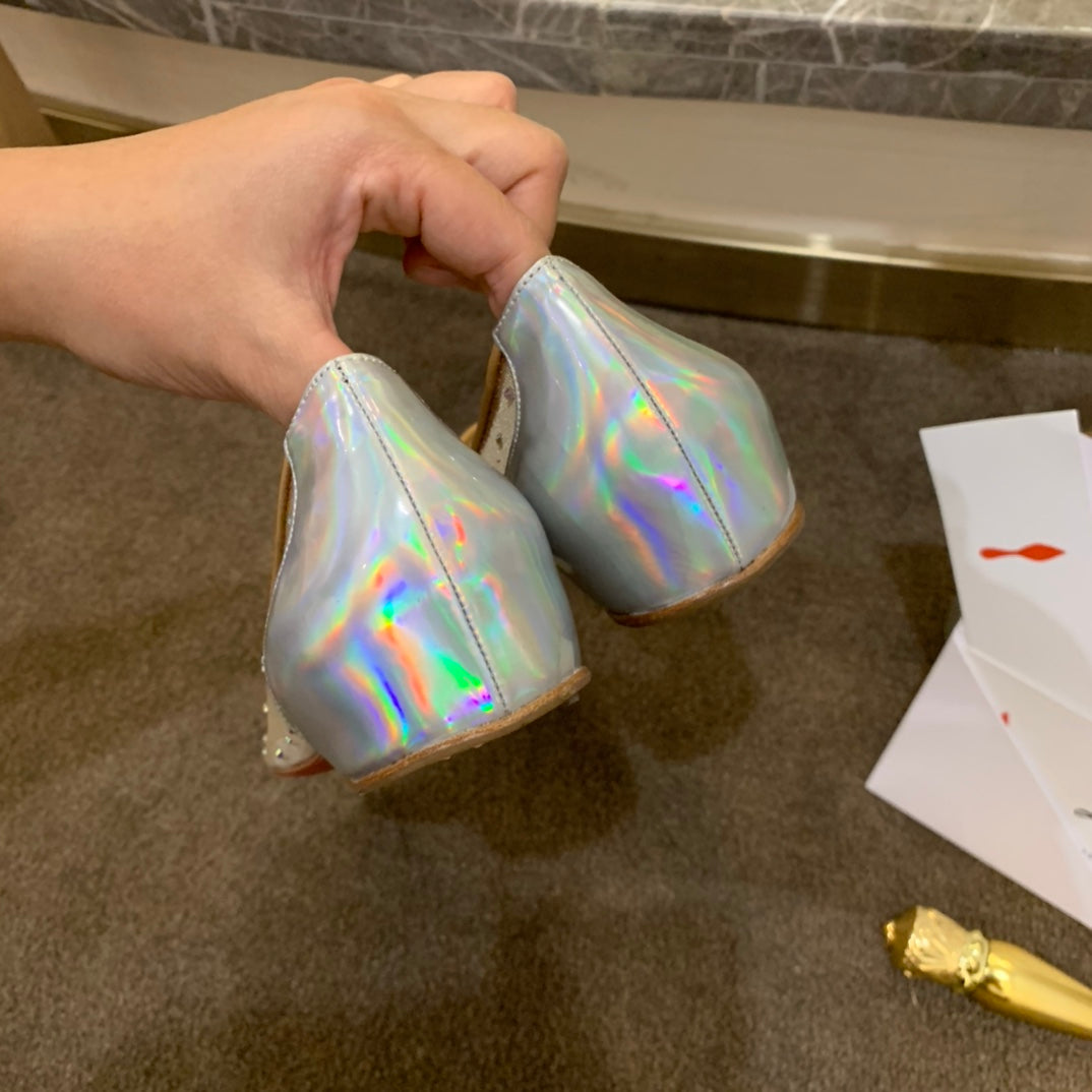 CL Degrastrass Flats Silver PVC and Strass Silver
