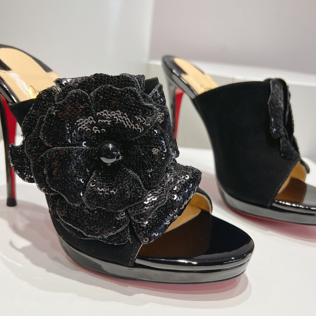 CL Crystal Queen 120 Sandal Black Patent Leather 177122