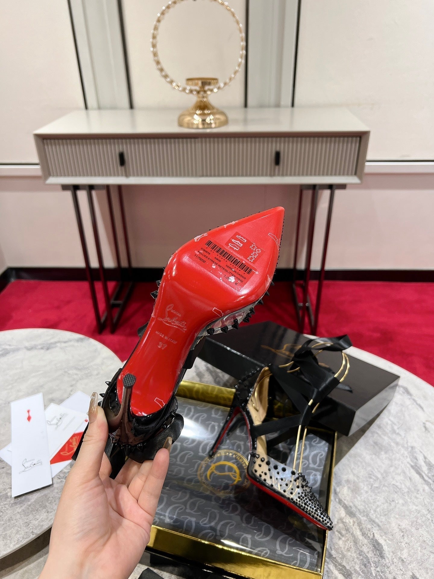 CL Mechante Reine Pumps 100mm Spike Patent PVC Black