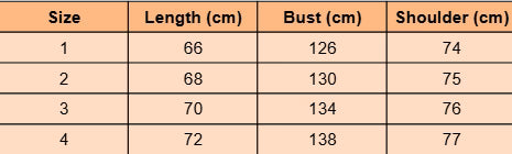 - For more information, please see the size guide below