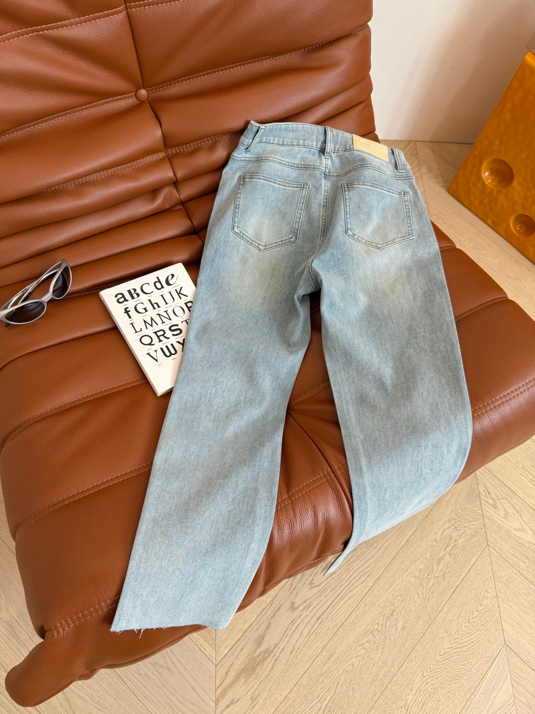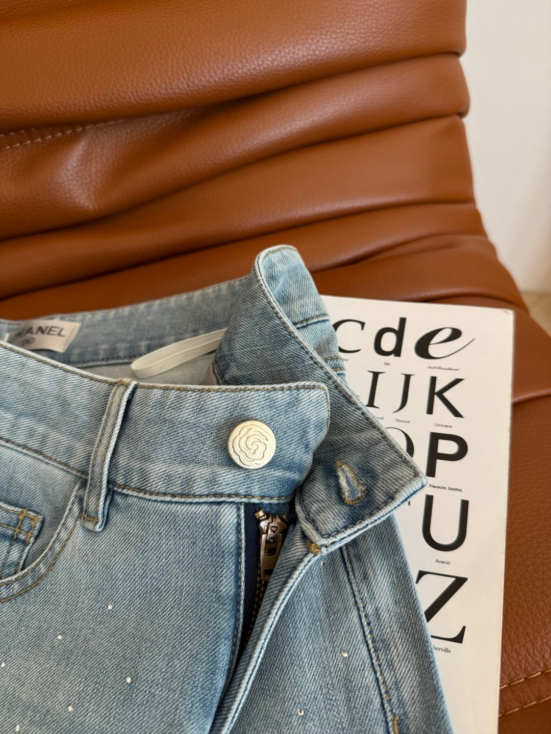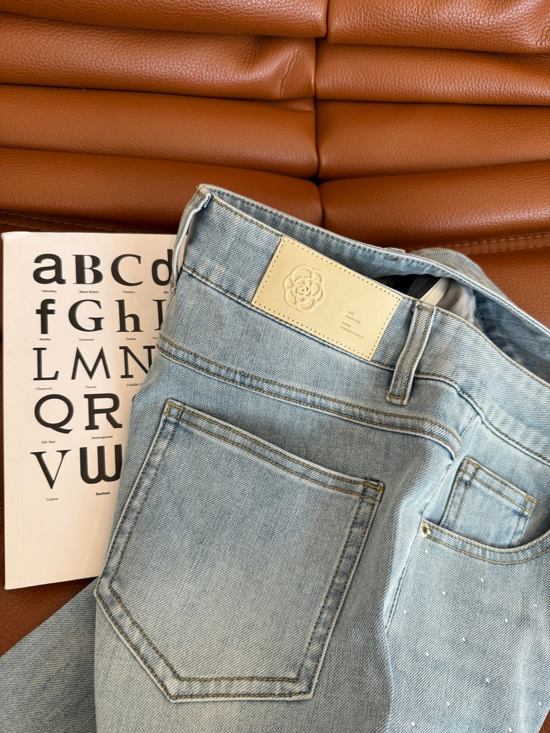 CC 25 Hollow Camellia Embroidery Jeans Light Blue Denim Cotton
