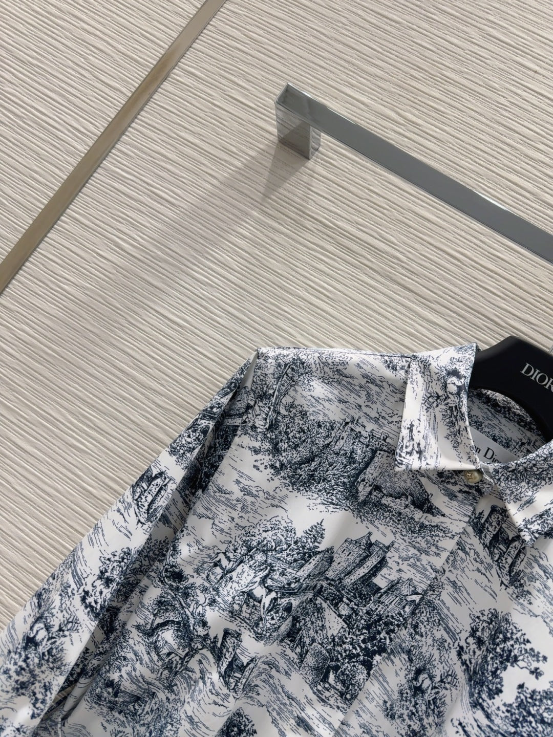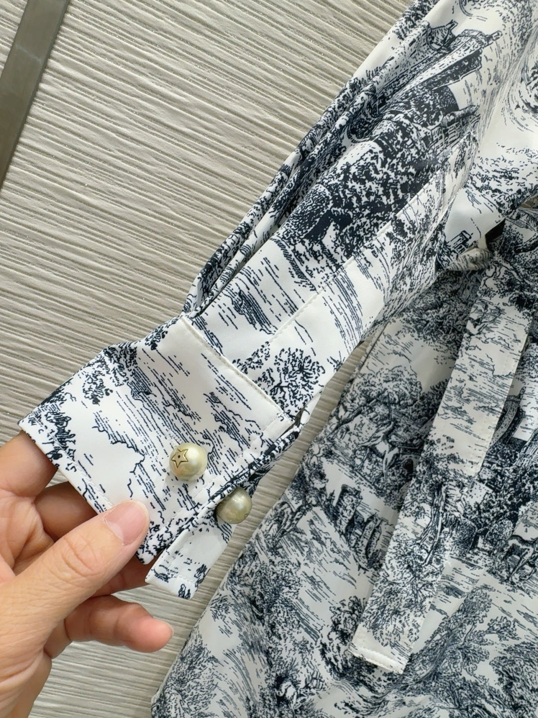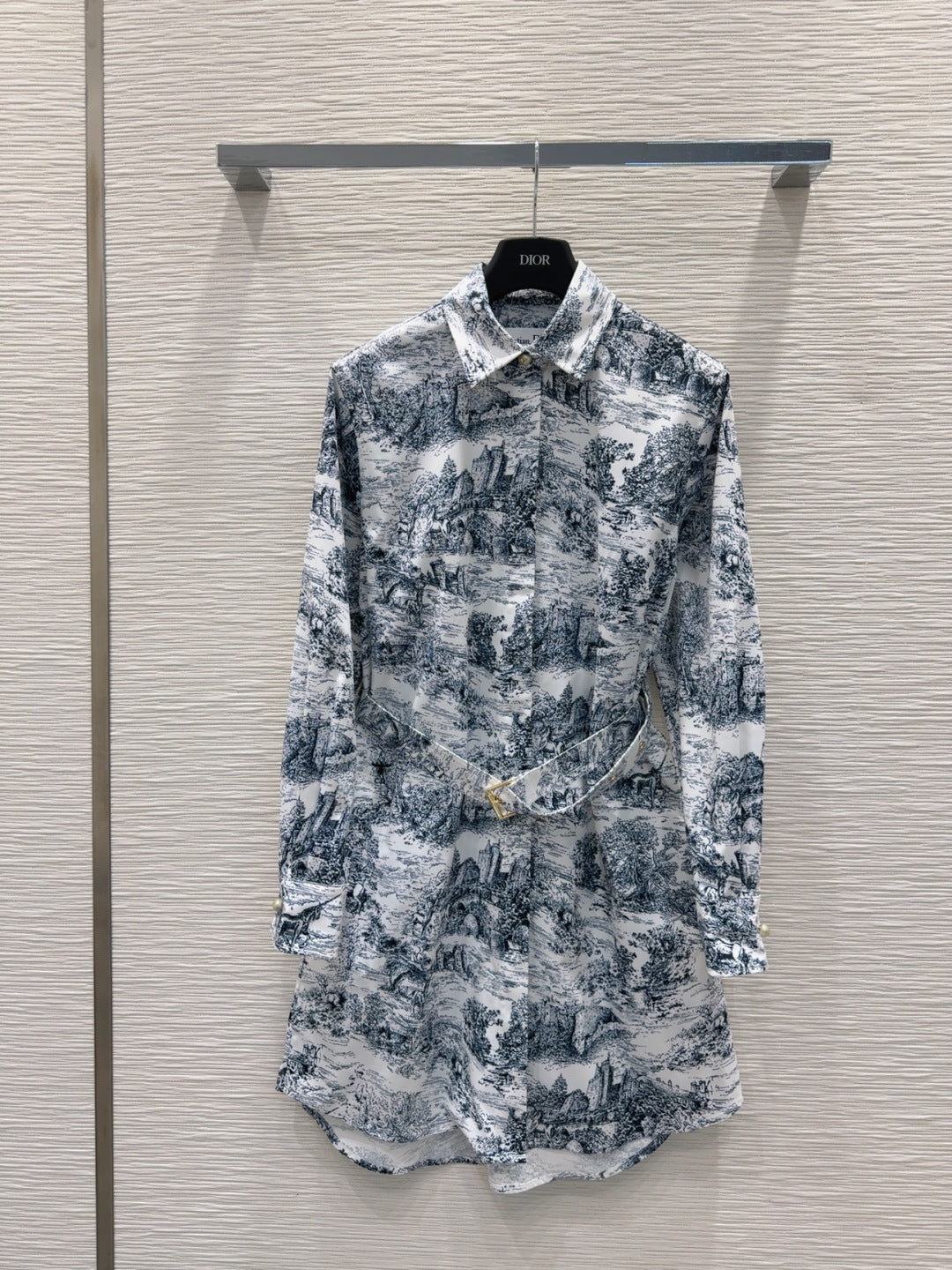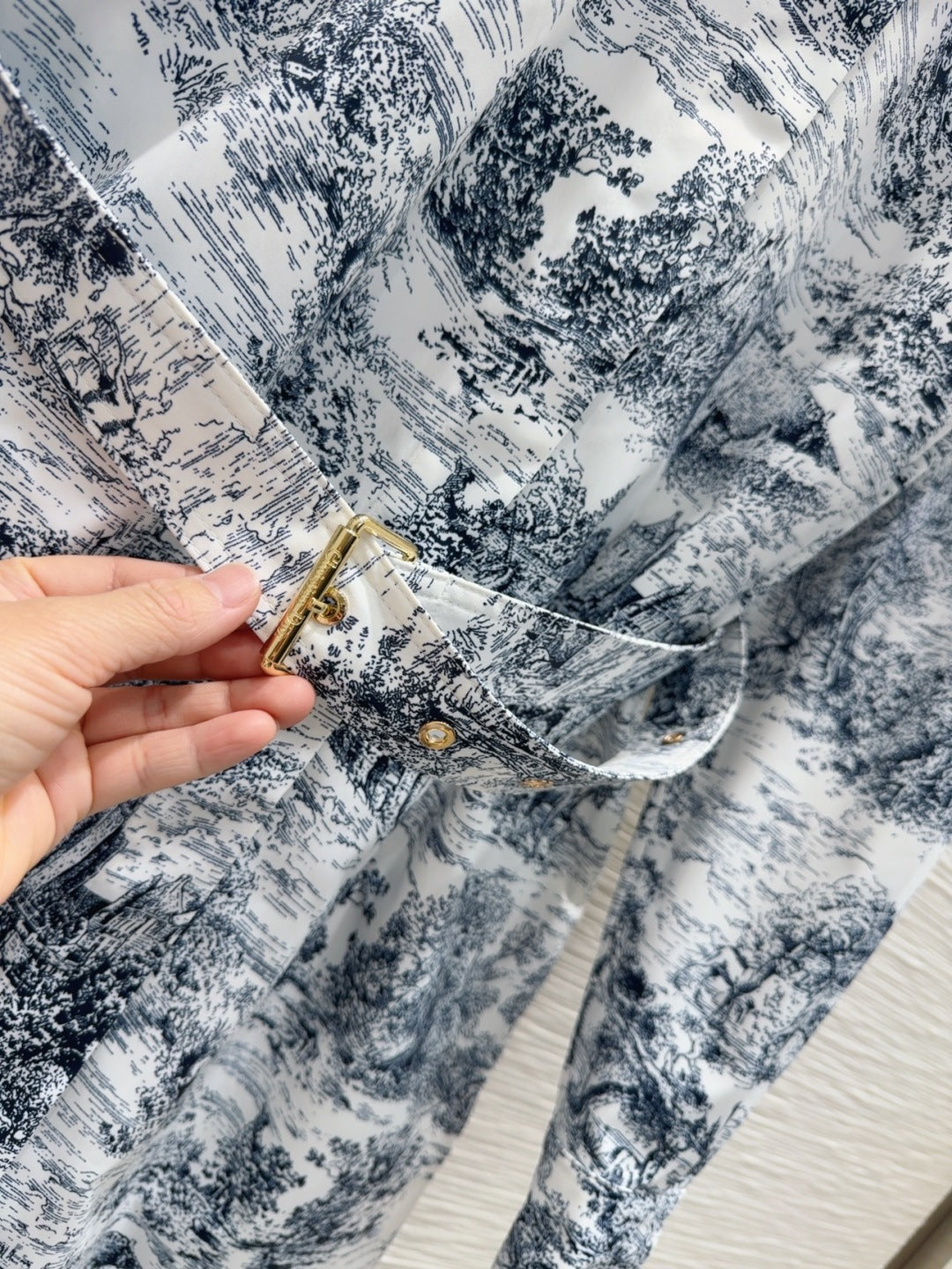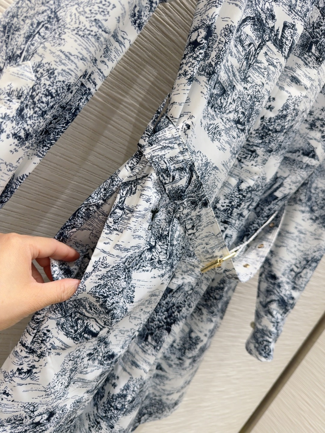 CD 2025 Toile de Jouy Dress White Navy Blue Polyester