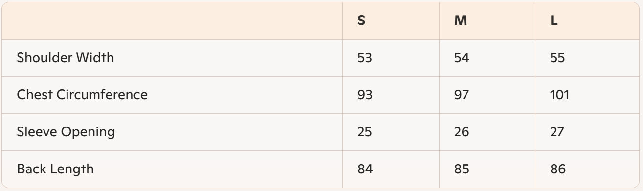 • Size: S, M, L