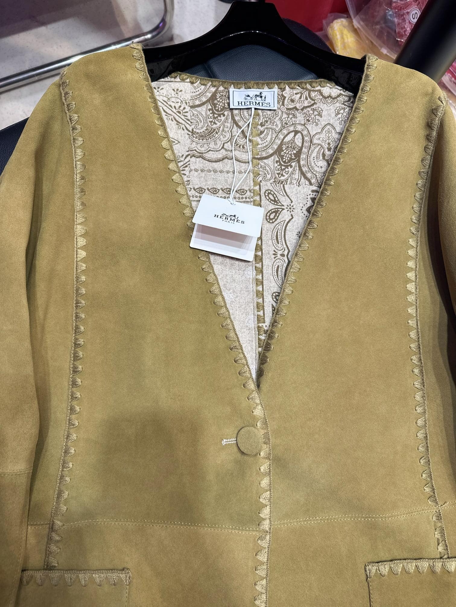 HERMES 25S MIDI SUEDE COAT 162