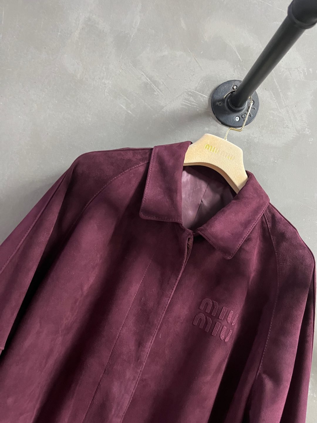 Miu Miu 2025 Jacket Burgundy Sheepskin Suede